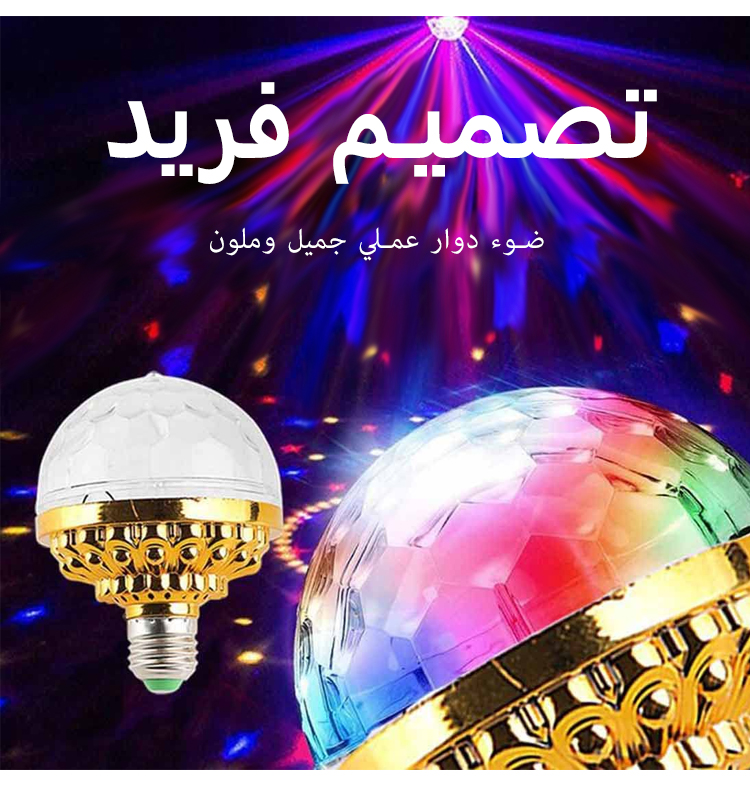 مصباح كروي سحري دوار ملون، عالي السطوع، وبتأثيرات إضاءة ملونة جميلة ورومانسية